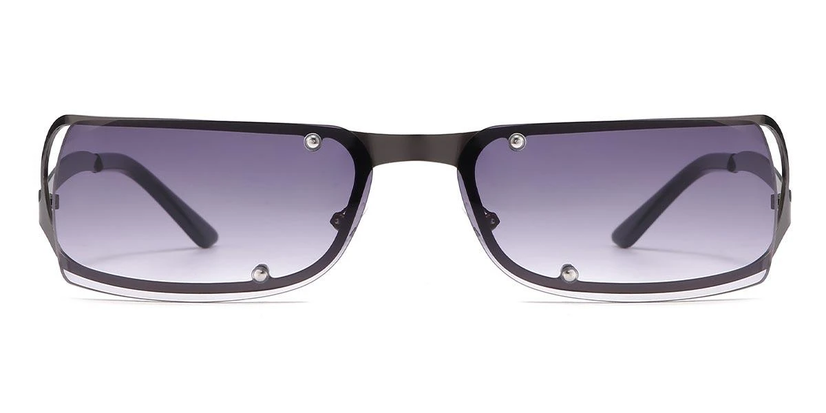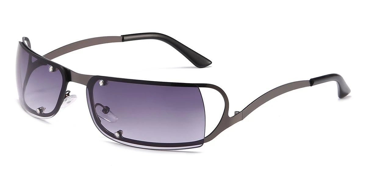 This pair of Ezekiel rectangle sunglasses boasts a purple gradient lens that can protect you from harsh sunrays. The uniquely shaped metal frame is sleek and stylish, with visible screws adding a handsomely rugged quality. This collection has other eye-catching color schemes to choose from.