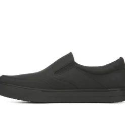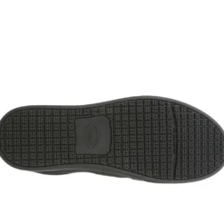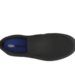 - Slip-on work shoes for men that stay comfortable all day long. PERFORMANCE TESTED: In independent lab testing, our mens work shoes beat industry average for comfort and cushioning. Oil-resistant, slip-resistant Lock Step Outsole™ meets SATRA TM63 and TM144 standards. Passed additional surface testing for vinyl tile, eurotile, and steel plate. MATERIALS: Manmade upper. FIT: Slip-on fit for easy on/off. INSOLE: Memory Foam anti-compression insole, vented sock for breathability, Dri-Lex® moisture-wicking lining, and Aegis Microbe Shield® with anti-microbial linings. MIDSOLE: Reduces foot pressure, absorbs shock, and moves with your foot. MOVEMENT: Lightweight construction with amazing flexibility. STYLE: Mens slip-on shoes for work with non-marking rubber outsole.