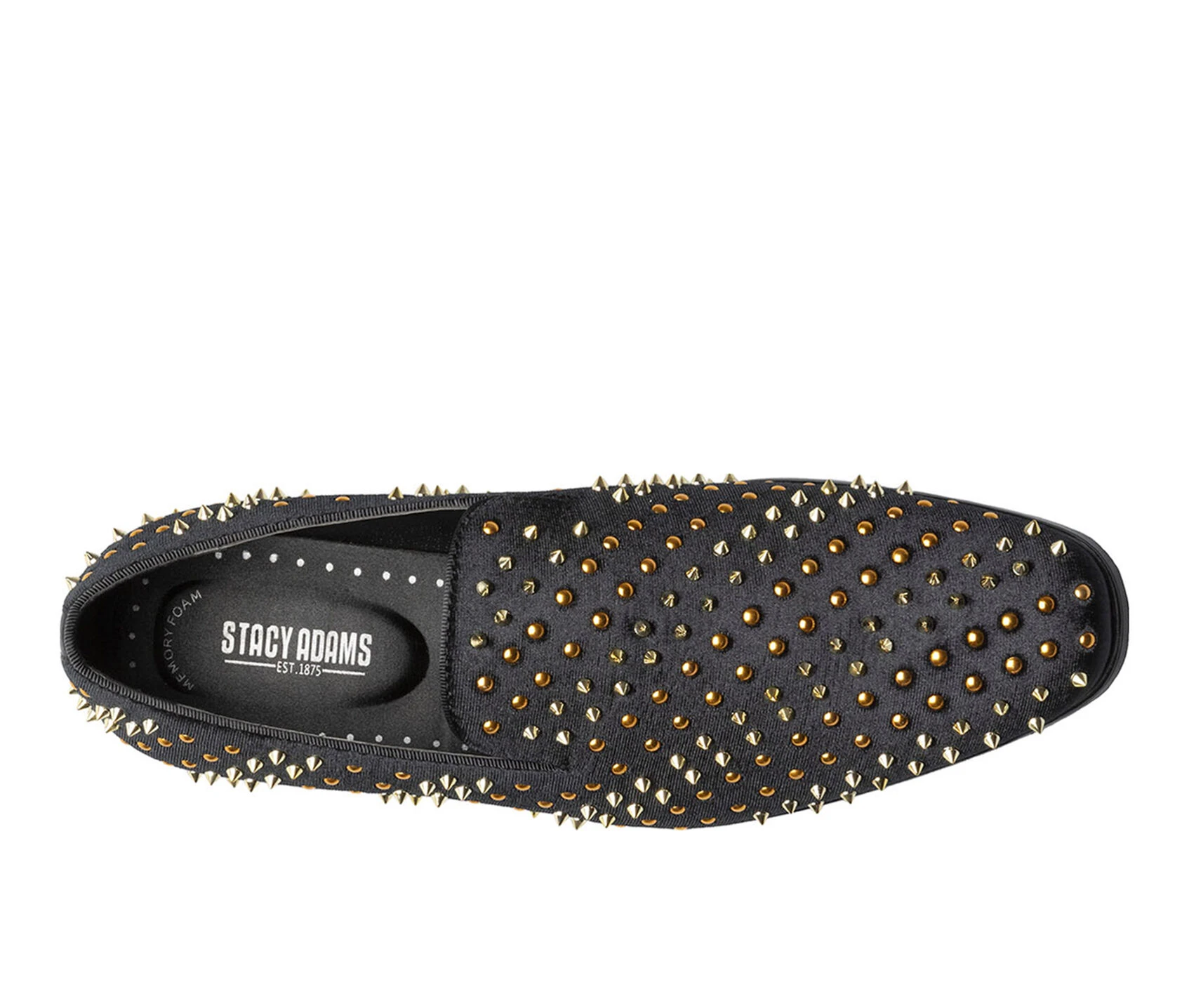 - You’d be hard pressed to find a sharper looking shoe than the Stacy Adams Sabert Spike And Stud Slip On. Covered in colorful spikes and studs on the outside, the inside is all cushy comfort with breathable linings and a satin-covered Memory Foam footbed.